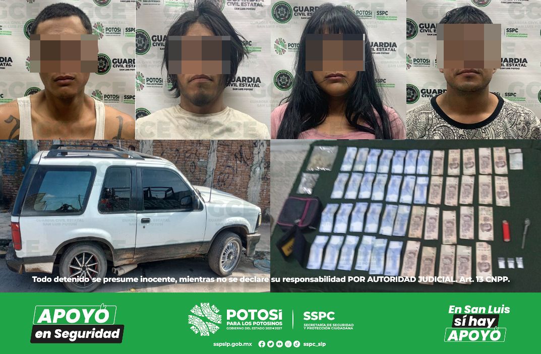 Por lo anterior se procedió a la detención de Joaquín “N” de 25 años, Ricardo “N” de 21 años, Loammi “N” de 24 años y Miguel “N” de 29 años, por presunto robo al interior de vehículo, quedaron a disposición de la Fiscalía General del Estado junto con lo asegurado.