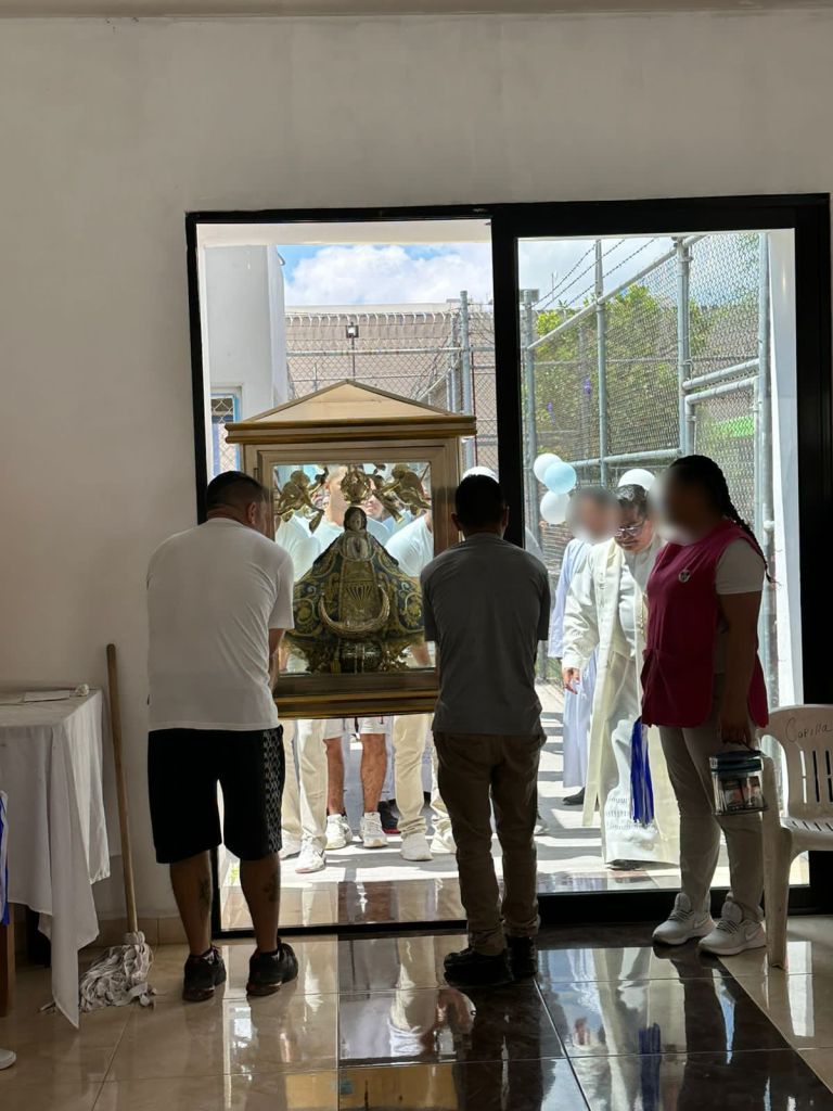 Las personas privadas de la libertad se sumaron a la comitiva que cargó la efigie y se hizo un recorrido por las principales áreas del centro penitenciario como parte del trayecto denominado Caravana Nacional de la Fe que incluye diversos templos religiosos y zonas del estado.
