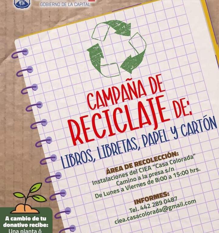 Para más información acerca de esta Campaña de Reciclaje, las personas interesadas pueden escribir al correo electrónico: ciea.casacolorada@gmail.com, o igualmente, pueden comunicarse al teléfono: 4422-890487, para la donación de libretas, libros, papel, cartón o el archivo muerto, a fin de que tengan una adecuada disposición final.