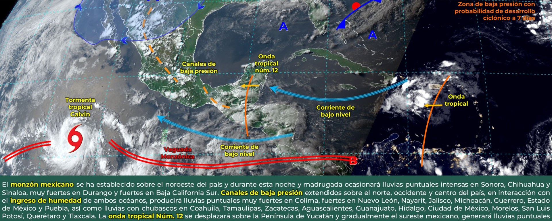 Lluvias aisladas (0.1 a 5 mm): ): Baja California Sur, Tamaulipas, San Luis Potosí, Guanajuato, Querétaro, Campeche, Yucatán y Quintana Roo..