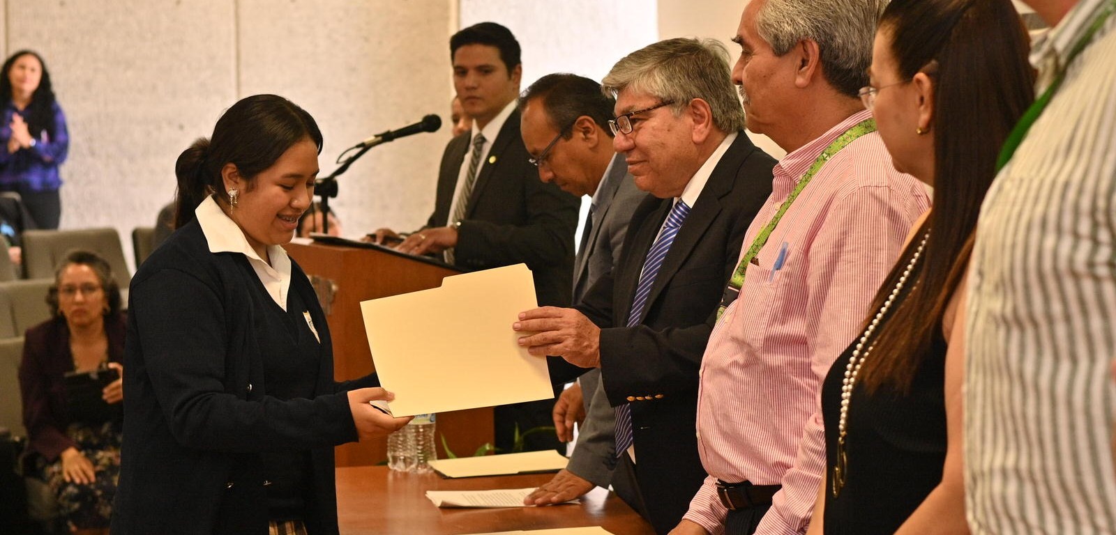 Durante el evento, la doctora Claudia Elena González Acevedo, jefa de la Secretaría de Servicios Escolares de la UASLP, expresó su agradecimiento a los alumnos participantes, así como a los padres de familia y docentes que apoyaron el certamen.
