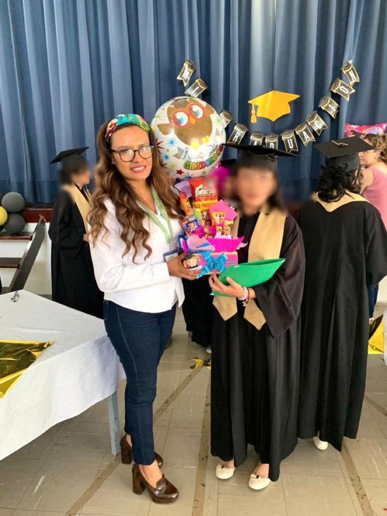En su evento de fin de curso, emocionadas, las niñas festejaron y vivieron gratos momentos con sus compañeras, además de recordar cada aprendizaje, tareas y las diversas actividades que compartieron juntas en su paso por su etapa de secundaria. Las graduadas fueron acompañadas por la directora general del DIF Estatal, Virginia Zúñiga Maldonado, quien felicitó a las estudiantes por su dedicación y esfuerzo, además de reafirmar el compromiso de procurar su educación, protección y desarrollo integral.