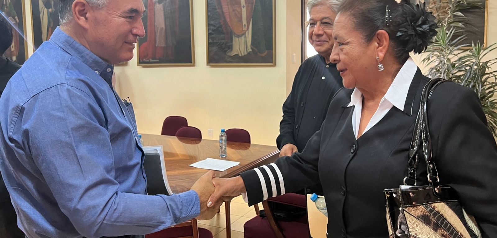 La reunión se llevó a cabo en la sede del arzobispado. Por parte de los comerciantes estuvieron presentes la Arquitecta María Carmen Ramírez Reyna, Eustolio López, Alicia Rivera y Felipe Vázquez. Por el Colegio de San Luis participó David Madrigal.