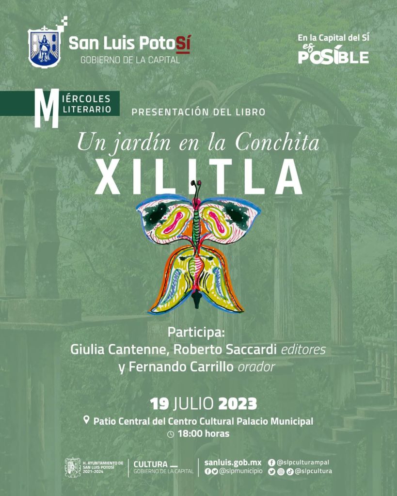 El Gobierno de la Capital y la Dirección de Cultura invitan a la presentación del libro: “Un jardín en la Conchita, Xilitla, el universo de Edward James, el cual se llevará a cabo en el marco del Miércoles Literario en Palacio Municipal este próximo miércoles 19 de julio a partir de las 6 de la tarde.