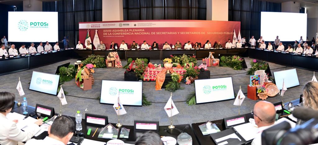 El Gobernador de San Luis Potosí Ricardo Gallardo Cardona, encabezó este miércoles la XXVIII Asamblea Plenaria Nacional de Secretarios de Seguridad celebrada en la Entidad potosina, donde ratificó el compromiso y apoyo del Gobierno Estatal en la prevención y combate de los delitos, a fin de fortalecer las políticas públicas de seguridad en el país.