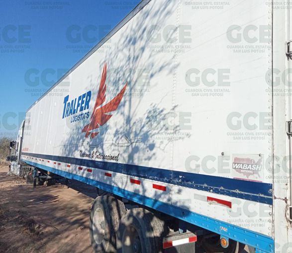 El Operador Interviniente del C-4 indicó que la unidad marca Kenworth, tipo tractocamión, color blanco, con placas del Servicio Público Federal, contaba con reporte de robo vigente. Además la unidad se aseguró con una caja seca marca Wabash, color blanco.