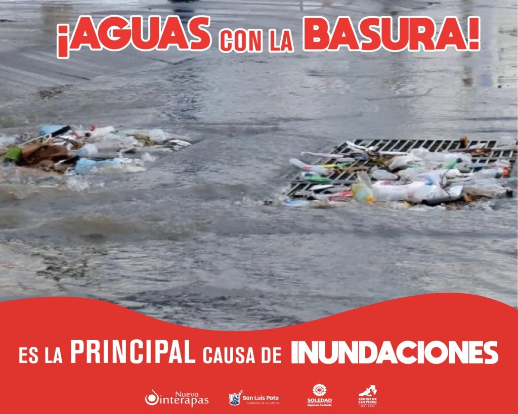 En estos días de lluvias el Nuevo Interapas exhorta a la población a no tirar basura en la vía pública ni en las alcantarillas domésticas para evitar el taponamiento y colapso de sistema de alcantarillado.