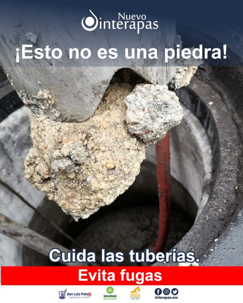 Para reportar fugas de aguas residuales el Nuevo Interapas pone a disposición de la ciudadanía el número telefónico de “Fuga Cero” 4443018874, así como redes sociales para consultas: twitter.com /interapas, facebook.com/interapas e instagram.com /interapas.