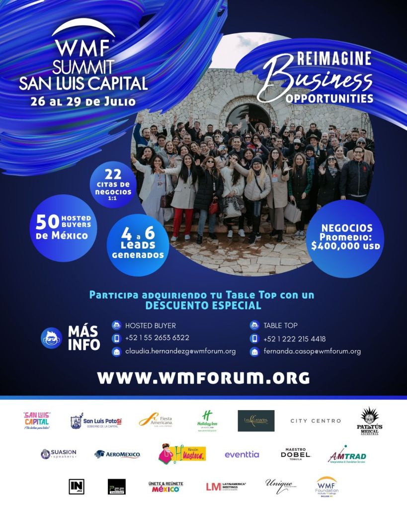El World Meeting Forum Summit Summit San Luis Capital mostrará los grandes atractivos de la ciudad y potenciará a la Capital del Sí como un importante destino para el turismo de congresos, convenciones, conferencias y eventos corporativos. Se contará con la presencia de 50 agencias especializadas o compradores,, por lo que el encuentro representa una extraordinaria ventana para exponer las ventajas de San Luis Potosí de manera directa, lo que redundará en el fortalecimiento del turismo de la ciudad, al darla a conocer como un destino para todos.