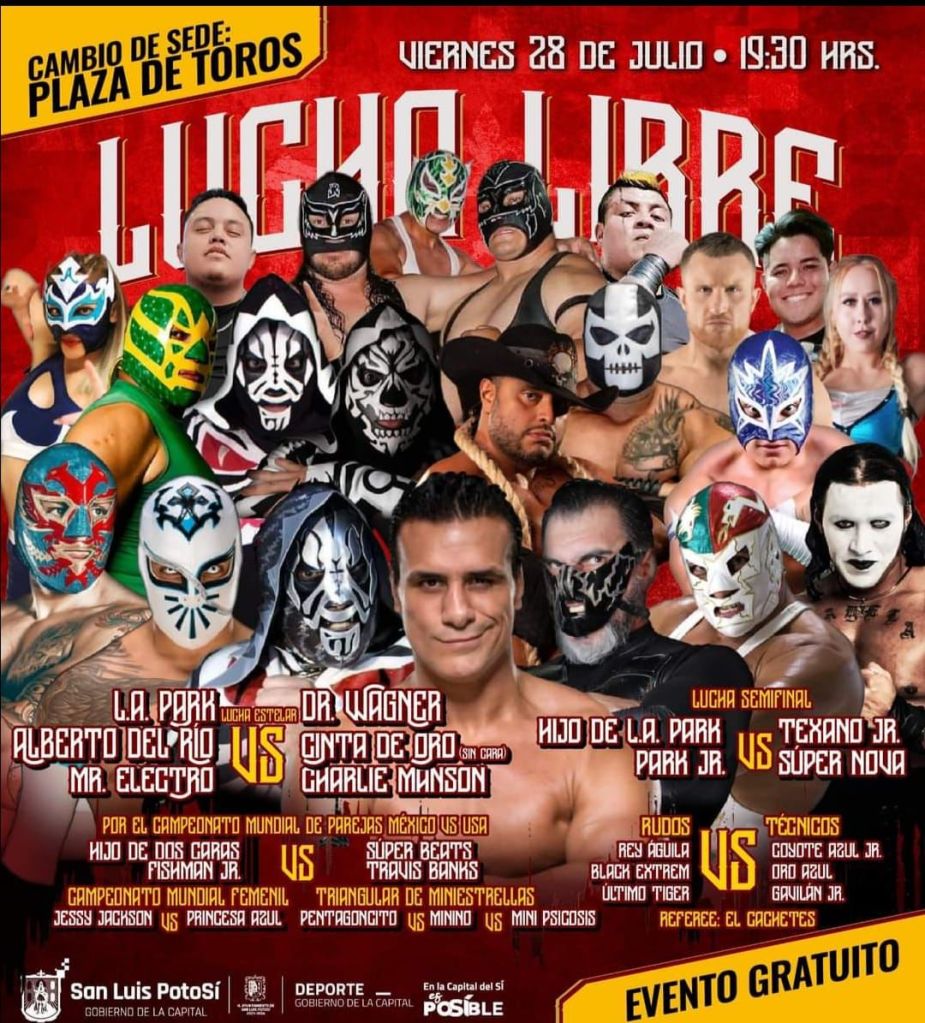 La cita es a las 19:30 horas y tendrá en la batalla estelar a LA Park, Mr. Electro y Alberto del Río para medirse nada menos que a Dr. Wagner, Cinta de Oro y Charly Manson.