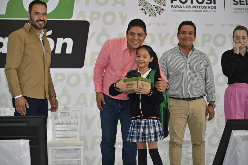 Gallardo Cardona afirmó que, este programa llegará a las comunidades más alejadas de las cuatro regiones y este año se proyecta entregar 300 mil mochilas con útiles escolares como libretas, diccionarios, juegos de geometría, lápices, calculadoras y entre otros, además de 150 mil pares zapatos, para contar con generaciones mejor preparadas acorde al crecimiento y desarrollo que vive San Luis Potosí.