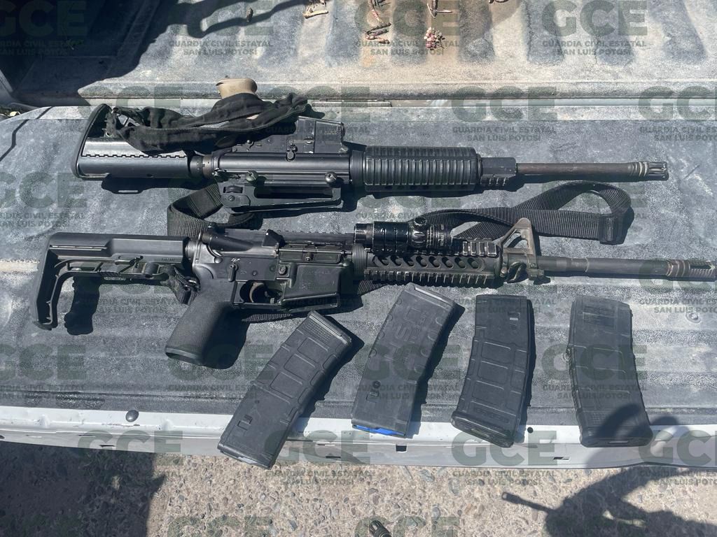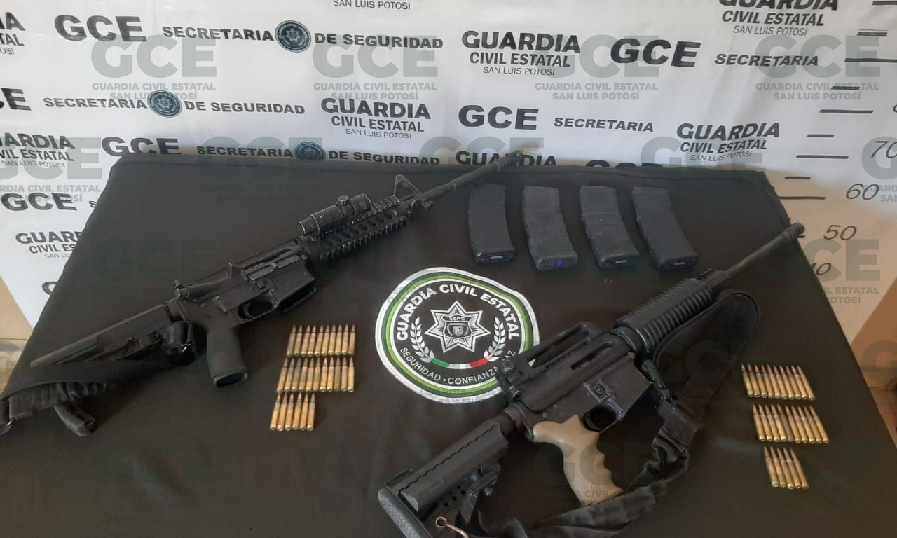 Dentro de la unidad, que se encontraba con las puertas abiertas, se encontraron dos armas largas con cuatro cargadores y 52 municiones calibre .223, lo cual fue asegurado y puesto a disposición de la Fiscalía General de la República.