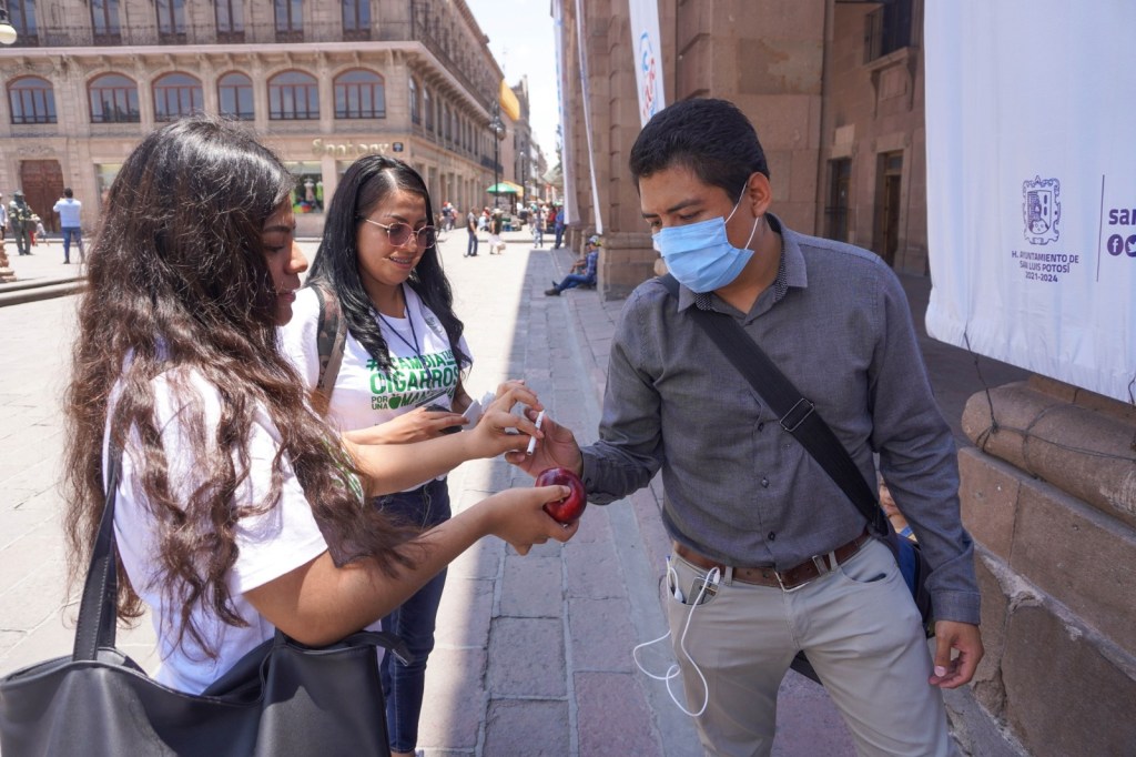 El titular de la dependencia estatal, René Contreras Flores, destacó que la instrucción del Gobernador Ricardo Gallardo Cardona es contribuir a la reducción del consumo de sustancias adictivas como las contenidas en los cigarros, por lo que, con la suma de acciones, esta jornada con duración de un mes, logró beneficiar a 35 mil 72 potosinas y potosinos, además de lograr el canje de tres mil 769 cigarros, por el mismo número de manzanas.