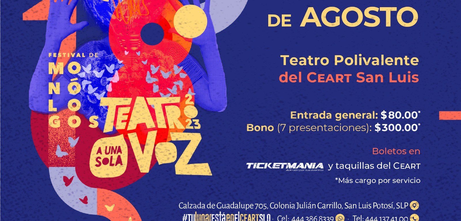 El festival de monólogos más importante de México se realizará en San Luis Potosí del 1 al 7 de agosto en el Teatro Polivalente del Centro de las Artes
