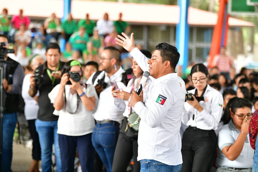 Con un recibimiento lleno de entusiasmo, muestras de respaldo y de agradecimiento de cientos de alumnas y alumnos, madres y padres de familia y personal docente de la secundaria general Benito Juárez, Gallardo Cardona dijo que, se avanza con los compromisos que generan bienestar para las y los potosinos, con acciones en apoyo a estudiantes de escasos recursos de todo el Estado, que fueron abandonados por la herencia maldita.