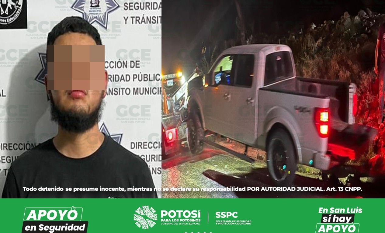 Un conductor que presumiblemente manejaba bajo los influjos del alcohol, fue detenido en la zona centro de Ciudad del Maíz, luego de que elementos de la Guardia Civil Estatal (GCE) visualizaran a dicha persona, con una ruta errática y a velocidad inmoderada.