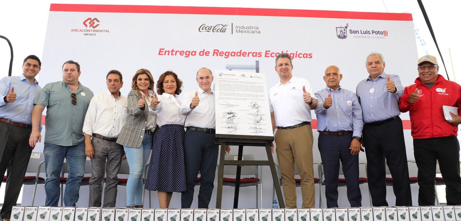 La empresa Arca Continental, de la Industria Mexicana de Coca-Cola, y el Ayuntamiento de San Luis Potosí, firmaron un convenio por el cuidado del agua, que implica que la empresa dotará parte del líquido que extrae de sus pozos, además de que aportará el total del agua que reutiliza, para ser usada en la rehabilitación de parques y jardines de la ciudad; lo que consolida la gran alianza que se ha establecido entre el Gobierno Municipal, la Iniciativa Privada y la sociedad, para hacer frente a la emergencia hídrica que se vive en la Capital.