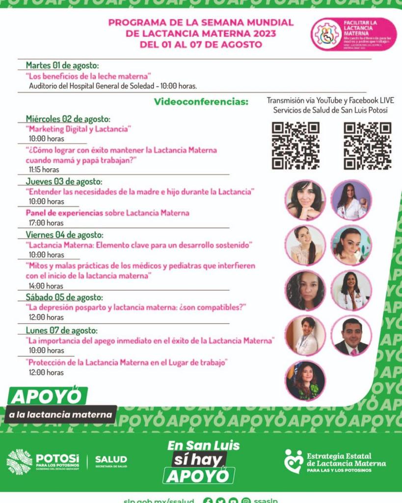Acompáñanos del 01 al 07 de agosto en la Semana Mundial de la Lactancia Materna a través de las transmisiones vía facebook LIVE y en nuestro canal de YouTube @ssaslp.
