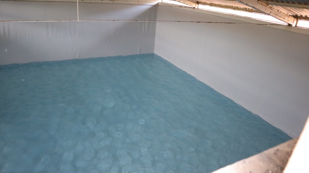 El tanque fue sometido a reparación ya que debido al paso del tiempo aparecieron algunas fisuras en su interior, por lo que para detener la fuga de agua se vacío por completo y se restauraron las paredes.