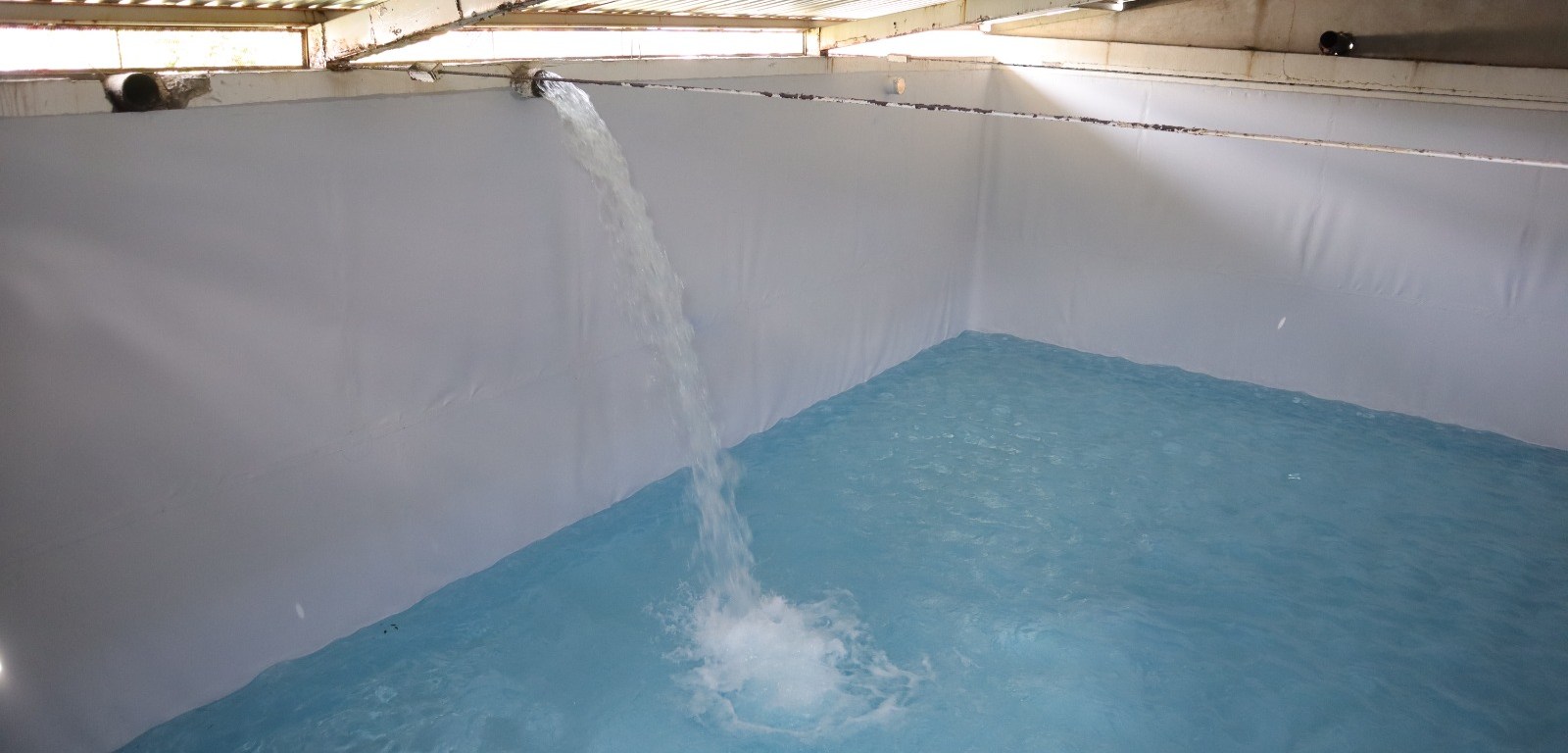 Al concluir los trabajos y quedar en total funcionalidad, la pileta fue llenada para rebombear agua por red.