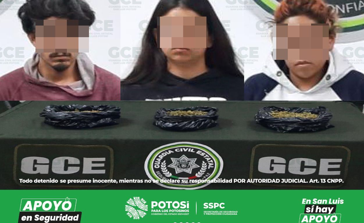 Gracias a las tareas de inteligencia que son implementadas en los diferentes puntos de la capital potosina y su zona conurbada, así como a los reportes de la ciudadanía, policías de la Guardia Civil Estatal (GCE) desmantelaron una red de presuntos narcomenudistas que fueron capturados con más de medio kilo de marihuana.