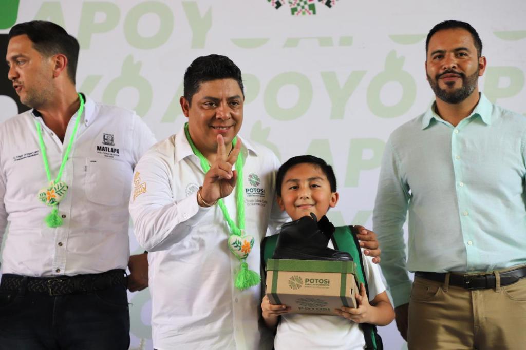 Matlapa, San Luis Potosí.- Con la entrega de más de 9 mil apoyos escolares, las niñas y los niños de educación básica que habitan en Matlapa tendrán las herramientas necesarias para continuar con sus estudios, gracias al apoyo que reciben del Gobernador de San Luis Potosí Ricardo Gallardo Cardona.