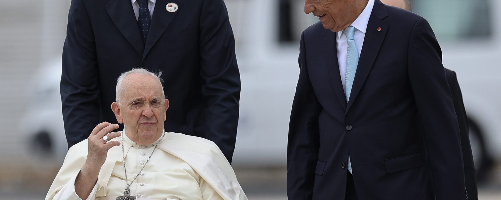 A su llegada a Lisboa, el Santo Padre descendió del avión de ITA Airways en su silla de ruedas a través de un ascensor y saludó posteriormente a las autoridades portuguesas. Entre ellos se encontraban el embajador de Portugal ante la Santa Sede, Domingos Fezas Vital, y el presidente de la República de Portugal, Marcelo Rebelo de Sousa.