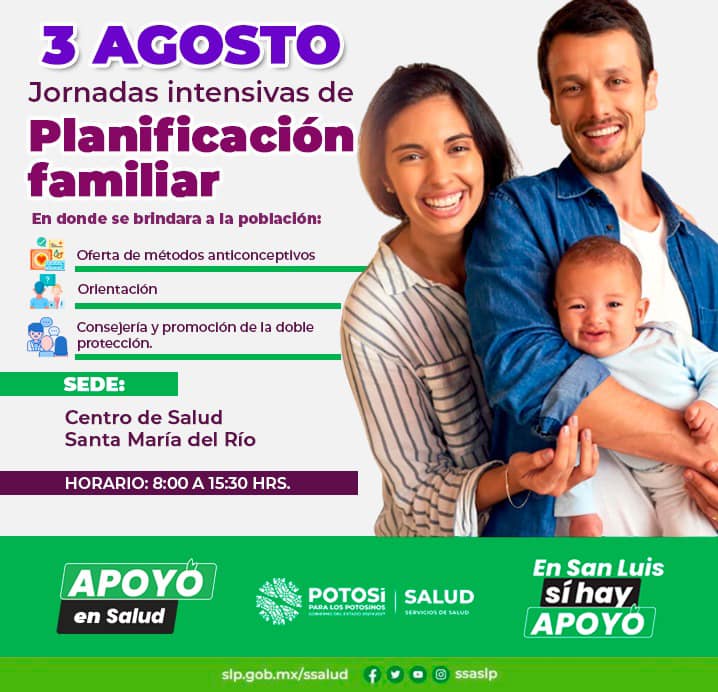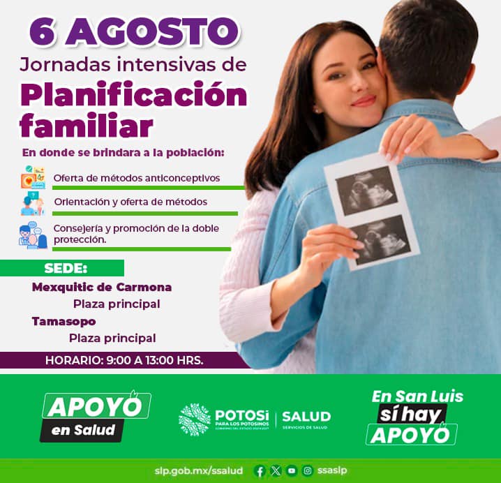 Las Jornadas de Planificación se estarán realizando en los municipios de San Luis Potosí, Matehuala, Santa María del Río, Mexquitic, Villa Hidalgo, Salinas, Ciudad Valles, y Tamasopo, puede consultar sedes y horatios en el siguiente link: https://www.facebook.com/ssaslp/posts/pfbid02EWZReyHxLQG8tmtPbFJMgTHGoro1ZLvh1hhcntCTn2xdiUo7AZwKtjsuarhCDcFxl