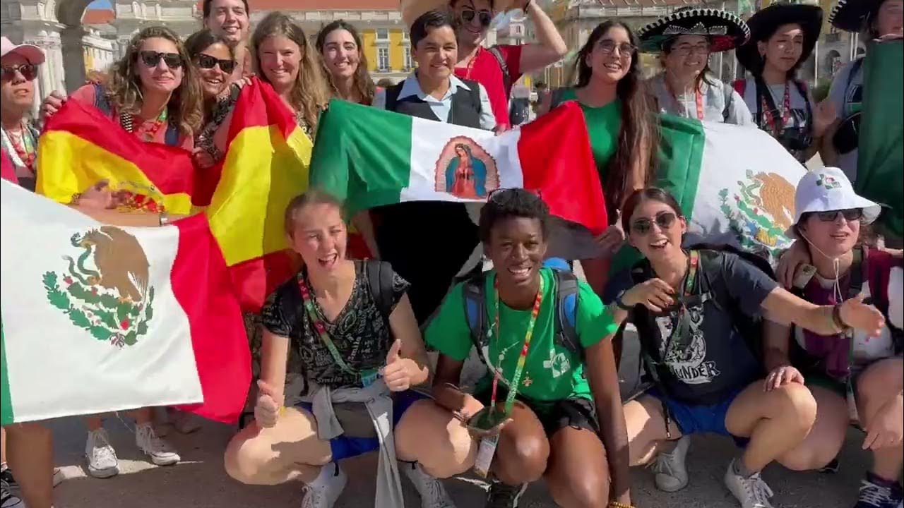 Los jóvenes peregrinos de México recorrieron las calles de Lisboa cantando «La Guadalupa» a todo pulmón y con batucada.