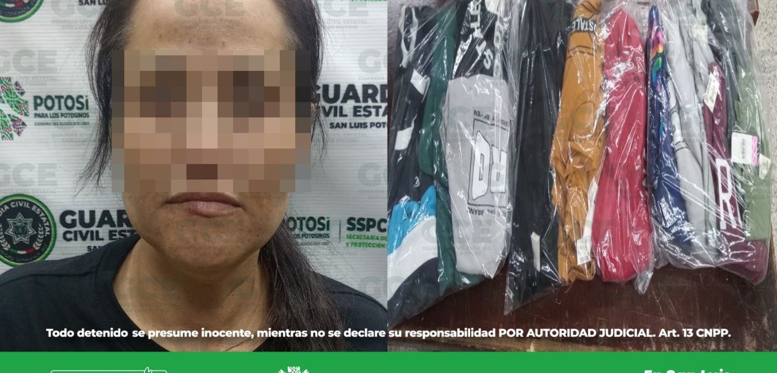 Los hechos fueron en la colonia Lomas del Tecnológico, policías de la GCE detuvieron a Claudia “N” de 39 años de edad, después de que tratara de huir con 25 prendas de vestir que supuestamente hurtó del establecimiento comercial, al ser descubierta fue retenida por personal del lugar, quienes solicitaron del apoyo de la policía para proceder legalmente en su contra.