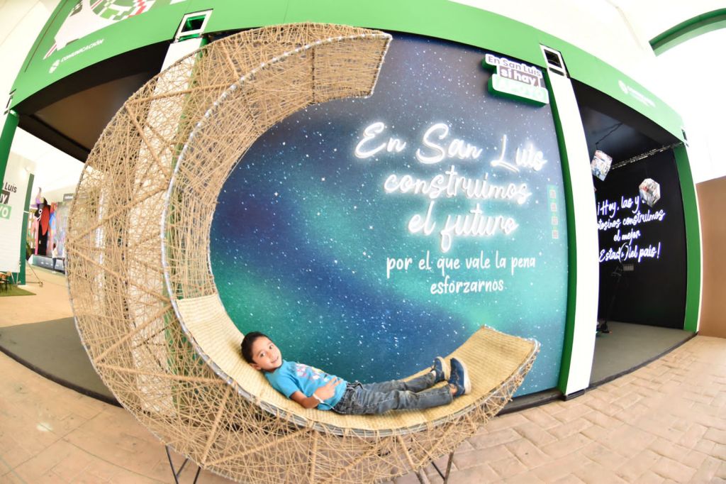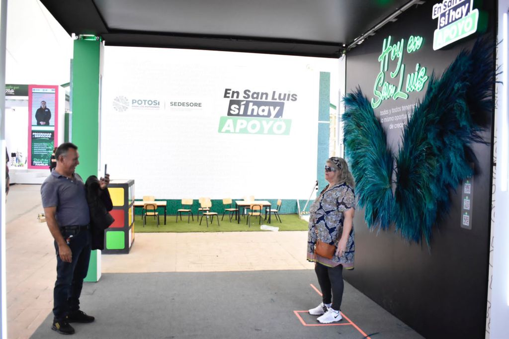 En apoyo al sano esparcimiento y convivencia familiar, las y los visitantes de la Feria Nacional Potosina (Fenapo), edición 2023, disfrutan del stand que instaló la Coordinación General de Comunicación Social del Gobierno del Estado, diseñado para la toma de selfies y video, los cuales tienen temáticas e inmobiliario interactivo totalmente gratis.