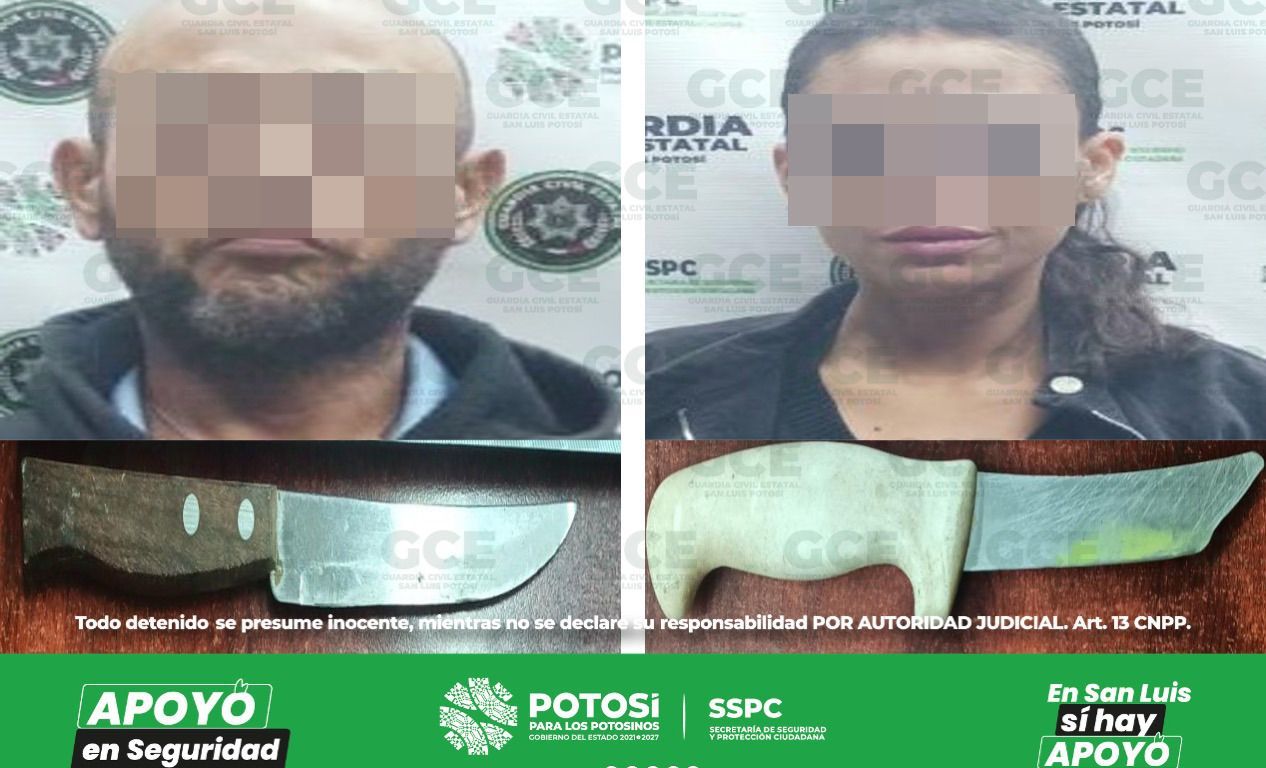 En diferentes acciones, policías de la Guardia Civil Estatal (GCE) detuvieron a un hombre y una mujer por el probable delito de portación de armas prohibidas, los hechos ocurrieron en la capital potosina.