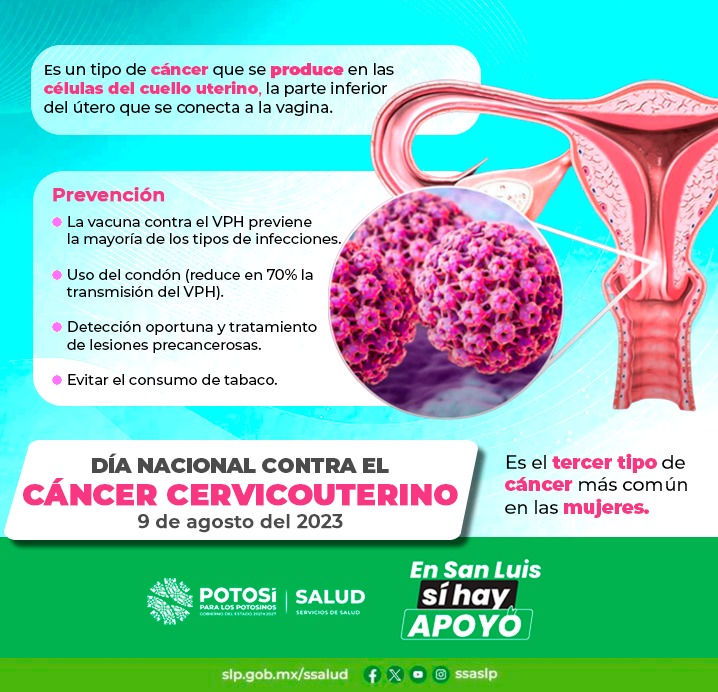 El cáncer de cuello uterino es prevenible y curable, la detección temprana y el tratamiento oportuno ofrecen una mejor calidad de vida para nuestras pacientes. En los centros de salud y hospitales de los Servicios de Salud de San Luis Potosí, hay apoyo con información y orientación a la población vulnerable para tomar decisiones voluntarias acerca de la detección, diagnóstico y tratamiento.