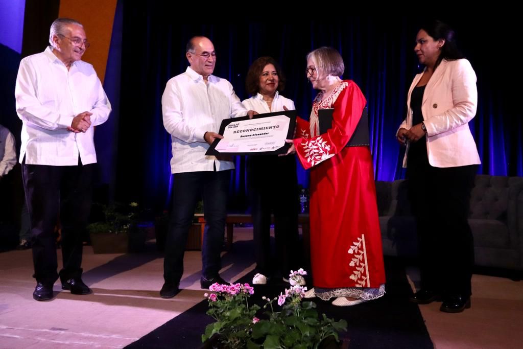 La Presidenta del DIF Municipal, Estela Arriaga Márquez y el Alcalde Enrique Galindo Ceballos, a nombre del Gobierno de la Capital, entregaron un reconocimiento a la actriz Susana Alexander, por su amplia trayectoria y por entretener a los adultos mayores potosinos.