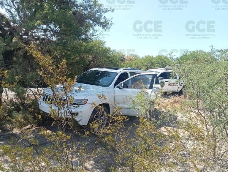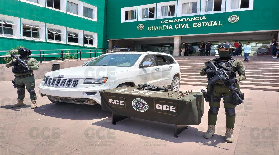 Como resultado de la respuesta inmediata de la Guardia Civil Estatal (GCE) ante situaciones que pongan en riesgo la integridad de las familias potosinas, un vehículo en el que se localizó un arma de fuego larga, droga y objetos “poncha llantas”, fue asegurado en la comunidad de San Ignacio.
