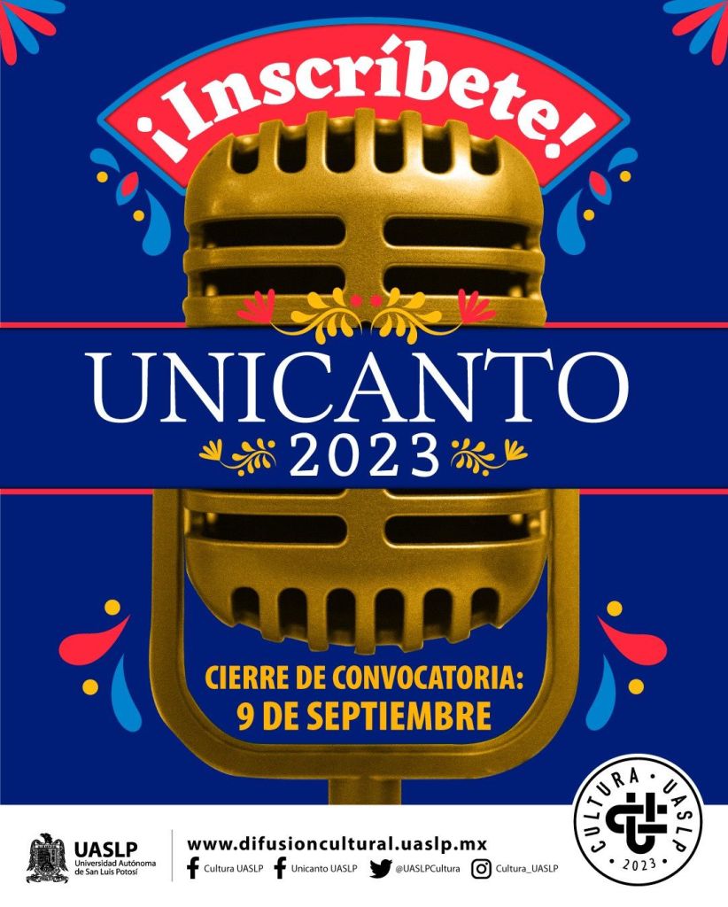 Regresa el concurso de mayor tradición en la Universidad Autónoma de San Luis Potosí, UNICANTO, en donde se busca fomentar el desarrollo integral de estudiantes, personal administrativo y docentes a través del canto, tras 26 ediciones desarrolladas con gran éxito, por lo que ya se encuentra abierta la convocatoria hasta el próximo 09 de septiembre de 2023.