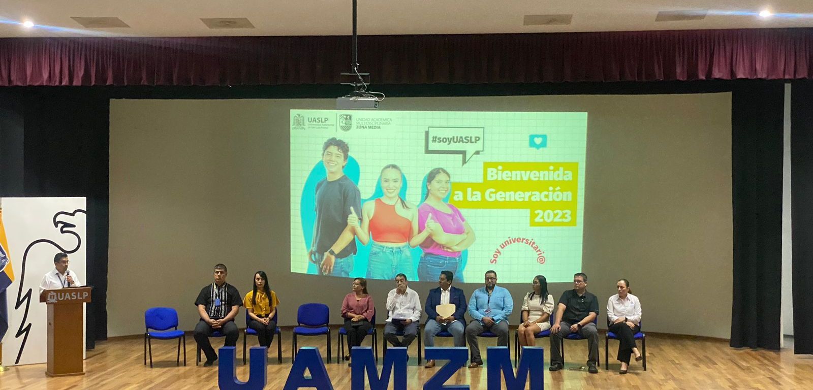 Durante la ceremonia de bienvenida al ciclo escolar 2023-2024 para las y los estudiantes de la Unidad Académica Multidisciplinaria Zona Media (UAMZM), que se realizó este miércoles 16 de agosto en su auditorio y contó con la presencia del director, doctor Héctor López Gama, así como coordinadores de los programas académicos, Zermeño resaltó la importancia de la ocasión al expresar que “nuestros estudiantes son el cimiento de nuestro futuro”.