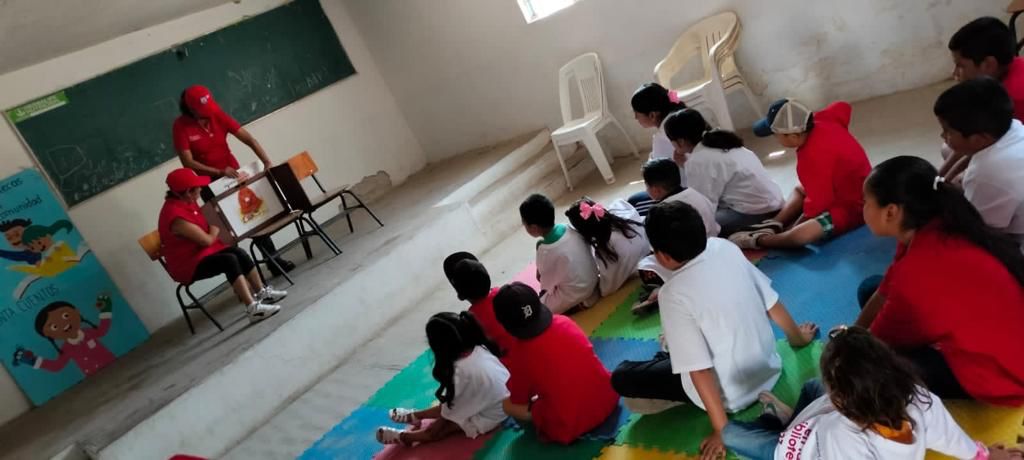 Capacitadores llevan a las niñas y los niños del programa Mi Biblioteca Sí en tu Comunidad, información sobre las 10 acciones sobre el uso y cuidado del agua.