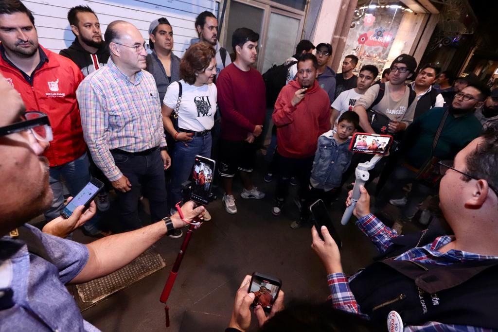 “Estamos transformando el Centro Histórico, de día el Director de Comercio, Jorge García y el Director de la Unidad de Gestión del Centro Histórico, Rafael Villalobos; todo el día están dando mantenimiento al Centro, regulándolo, ordenándolo. Por las noches disfrutamos el Centro con la expresión artística de muchos de potosinas y potosinos”.