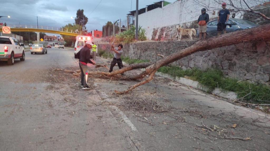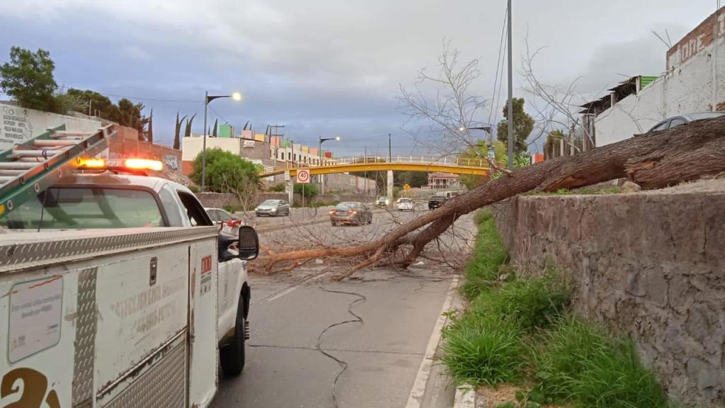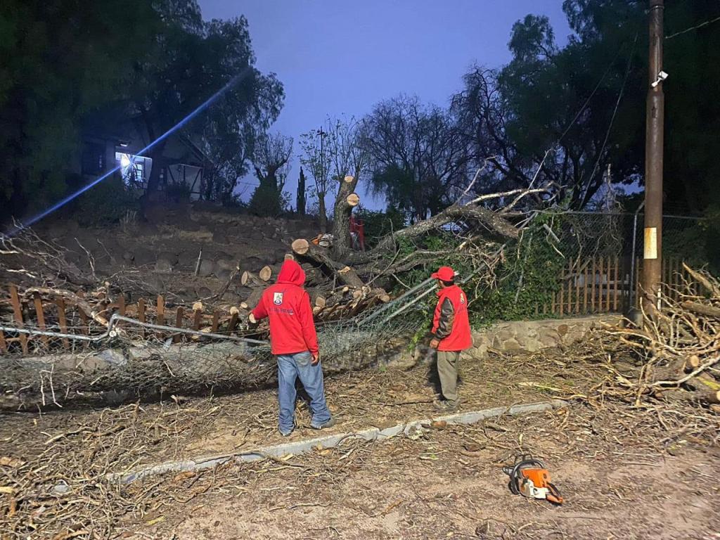 Protección Civil Municipal, junto a la Dirección de Servicios Municipales, atendieron reportes de árboles caídos en Fray Diego de la Magdalena, a la altura de Hernán Cortés; el Río Santiago, a la altura de Pedro Moreno; en Montes Aconcagua; en el Kinder La Venadita, en la Colonia Industrial Aviación y en carretera 57 con Eje 126; además de un poste en carriles centrales de Salvador Nava, con el puente Constitución.