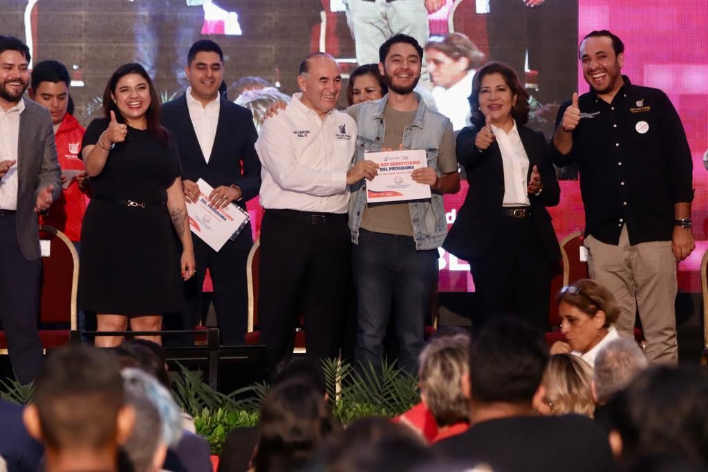 En reconocimiento al talento y compromiso de la juventud de la Capital del Sí, el Alcalde Enrique Galindo hizo entrega del Premio Municipal de la Juventud 2023 a seis destacados potosinos en diversas áreas, además de que arrancó con las becas a la Incorporación a la Educación Superior, para que los estudiantes potosinos puedan continuar con su preparación universitaria.