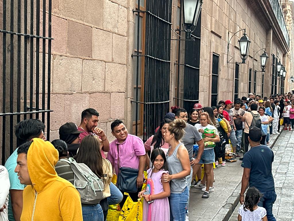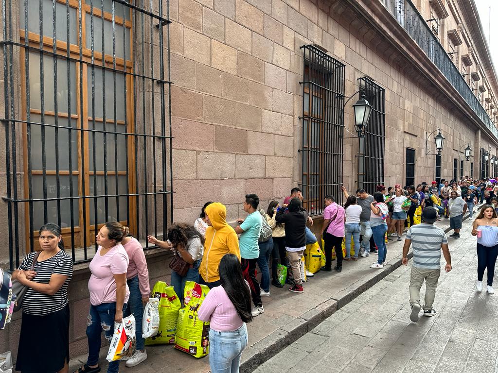 Más de cien personas acudieron a Palacio de Gobierno, donde permanecieron formados desde las ocho de la mañana para recibir su boleto de Alfredo Olivas y OV7, a cambio compartir un donativo para perros y gatos en situación de calle.
