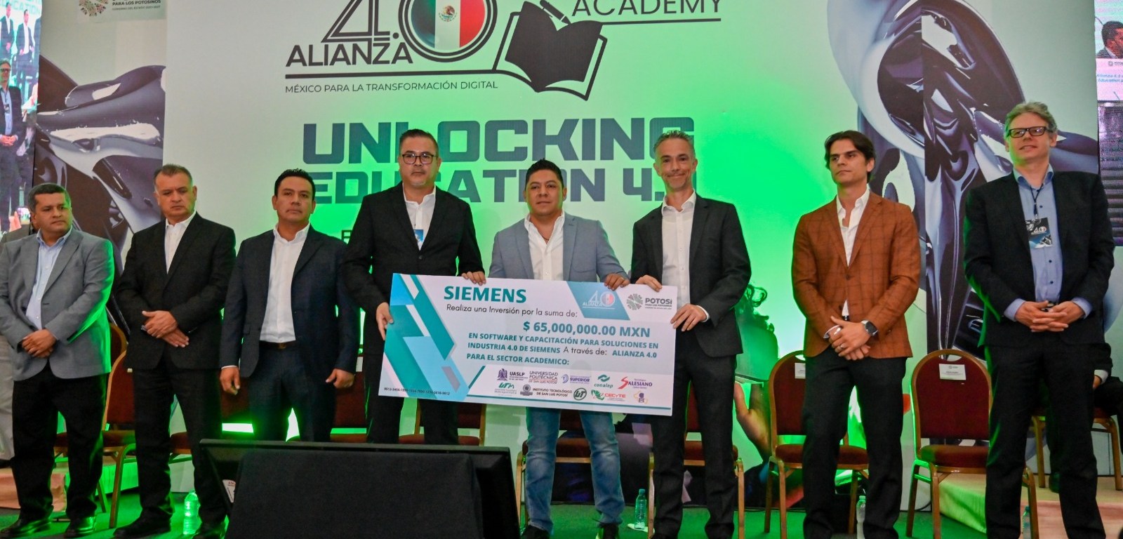 Durante el evento, el Titular del Ejecutivo, signó como testigo de honor los convenios de colaboración Alianza 4.0–Siemens–Gobierno del Estado a través de la Secretaría de Desarrollo Económico, y se hizo entrega de licencias y donación simbólica de la empresa Siemens para la educación en San Luis Potosí por 65 millones de pesos en certificaciones con la guía de 264 educadores certificados en 32 carreras y 319 materias, con lo que estudiantes participan en proyectos de digitalización en recursos humanos, académicos, tecnologías de información y manufactura.