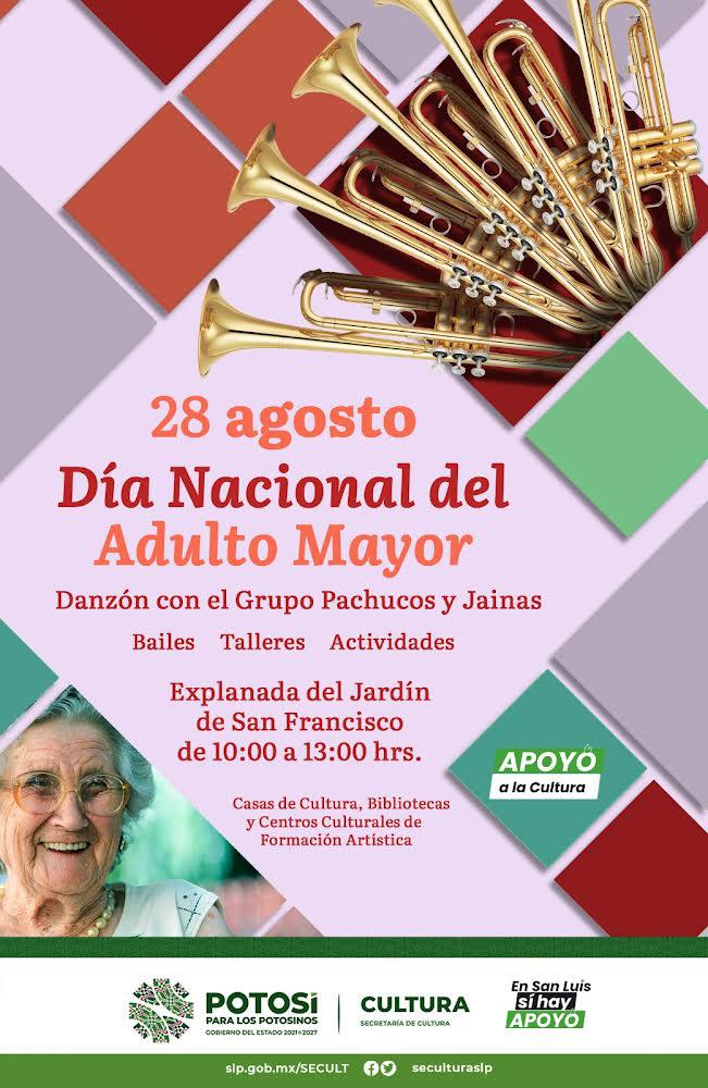 En San Luis Potosí si hay apoyo en cultura para las personas adultas mayores, por lo que la Secretaría de Cultura de Gobierno del Estado las invita a participar en las diversas actividades y eventos que se llevarán a cabo, para honrarles y promover su bienestar y participación activa en la sociedad, en el marco del Día Nacional de la Persona Adulta Mayor.