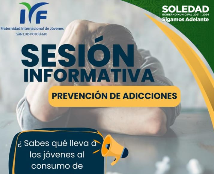 La prevención es la clave para garantizar el futuro de las nuevas generaciones, por ello, el Instituto Municipal de la Juventud de Soledad de Graciano Sánchez, ofrecerá la sesión informativa denominada “Prevención de Adicciones”, en la que se abordaran temas esenciales relacionados con la dependencia a sustancias nocivas y sus impactos en la salud física y mental de las y los jóvenes.