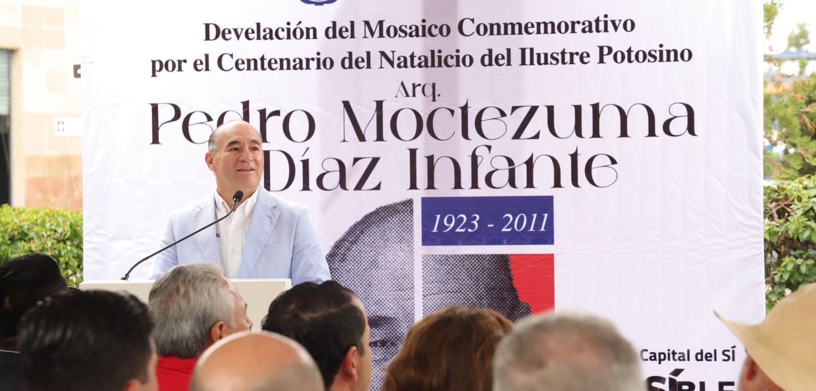 El Alcalde Enrique Galindo Ceballos, en conmemoración del Centenario del Natalicio del Ilustre Potosino Arq. Pedro Moctezuma Díaz Infante, encabezó el homenaje póstumo y develación del Mosaico en honor del célebre personaje, en la Plaza del Milenio del Centro Histórico de San Luis Capital. En el monumento se leen algunas de las grandes obras en las que participó, tales como: el diseño del Escudo Nacional, del que es coautor; fue urbanista y constructor de obras como la Torre Pemex, el Aeropuerto y Centro de Convenciones de Acapulco, Guerrero; la Facultad de Contaduría de la UNAM, y el Centro Nuclear de Salazar del Estado de México: rescató el Chamizal de Cd. Juárez, desarrolló la canalización del Río Tijuana, fue promotor del Lago Nabor Carrillo, y participó en importantes proyectos de vivienda popular, culturales y ambientales.