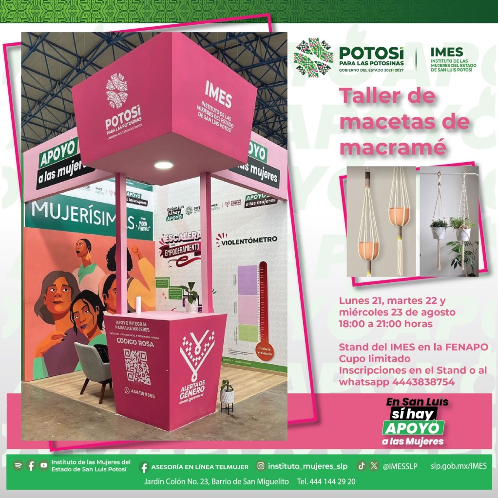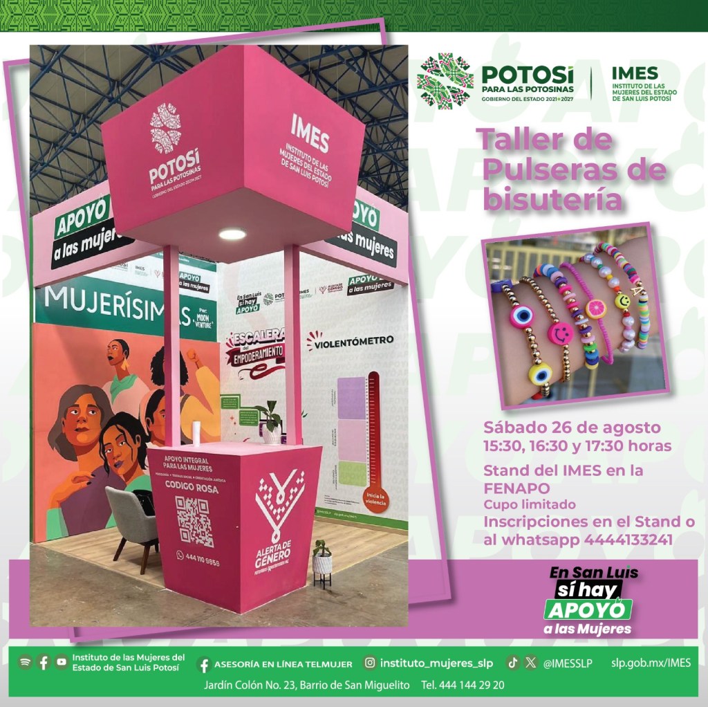 En San Luis Potosí sí hay apoyo a las mujeres, por lo que a través del módulo instalado en la Feria Nacional Potosina (Fenapo) edición 2023, el Instituto de las Mujeres del Estado (Imes), ha brindado 405 asesorías legales y 535 de atención psicológica de manera confidencial y gratuita.