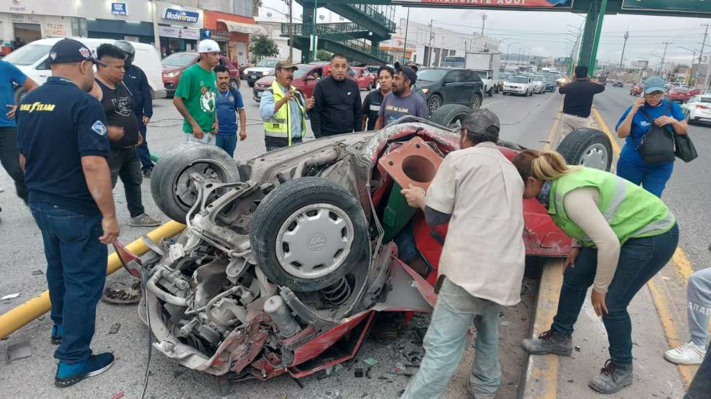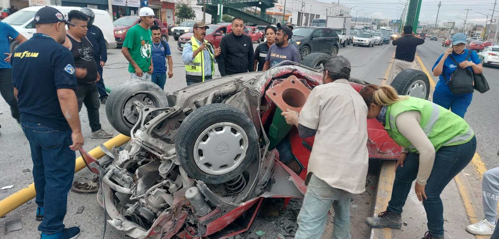 La tarde de este viernes se registro un fuerte accidente de una camioneta color rojo que prácticamente se parte en dos, los hechos ocurrieron bajando el puente de periférico carretera Rioverde en el tramo donde comienzan los reductores, las autoridades y servicios de emergencia ya están en el lugar, tome precauciones.