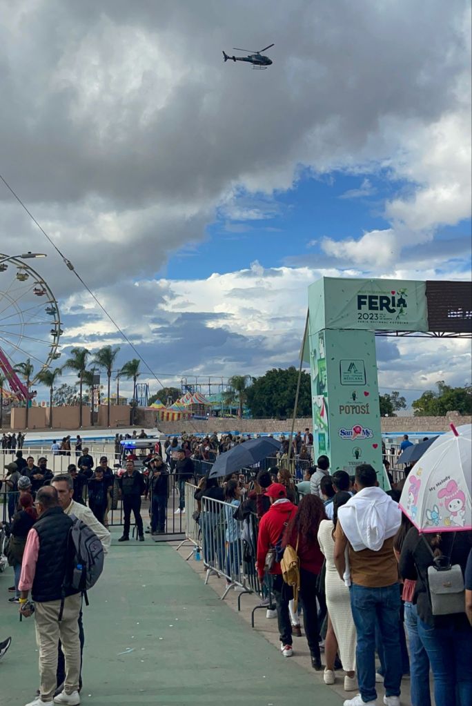 Cuerpos de seguridad, protección civil, rescate y emergencias participan en dispositivo especial de vigilancia en la Feria Nacional Potosina, a unas horas de la presentación del Grupo Firme en el Teatro del Pueblo donde se espera un lleno total.