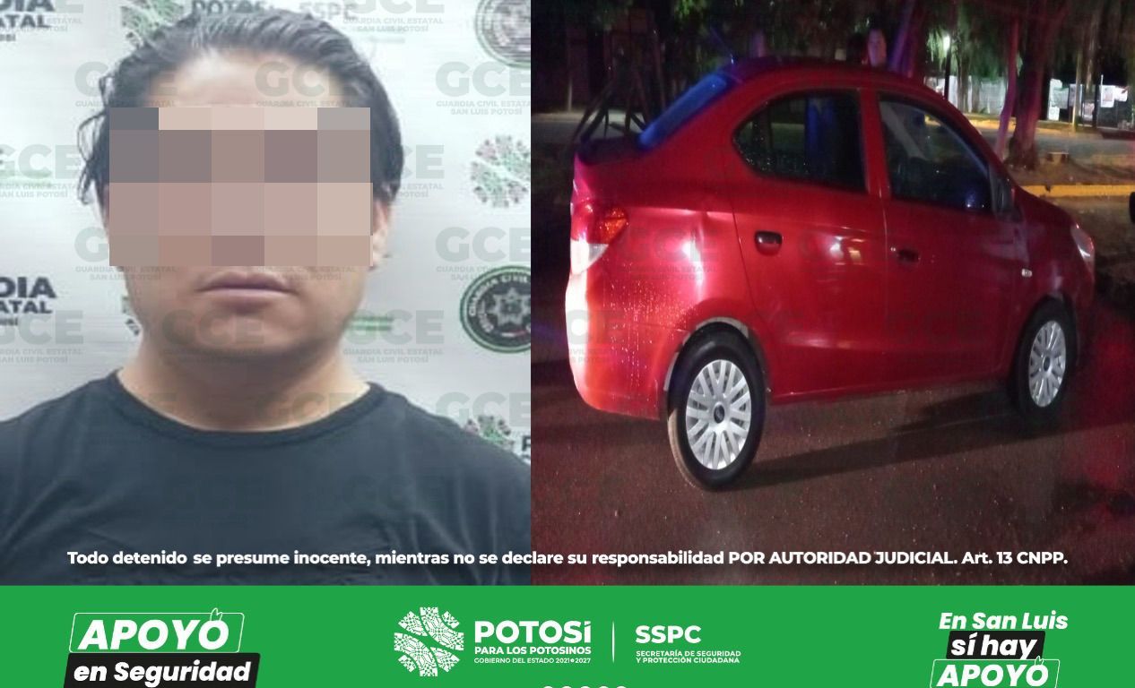 Los hechos tuvieron lugar en la colonia Bosques de la Florida en la capital potosina, ahí fue detenido Sergio “N” de 42 años de edad, a quien se le aseguró un vehículo marca Dodge, color rojo, con placas de esta entidad, mismo que contaba con reporte de robo del mes de junio del presente año.